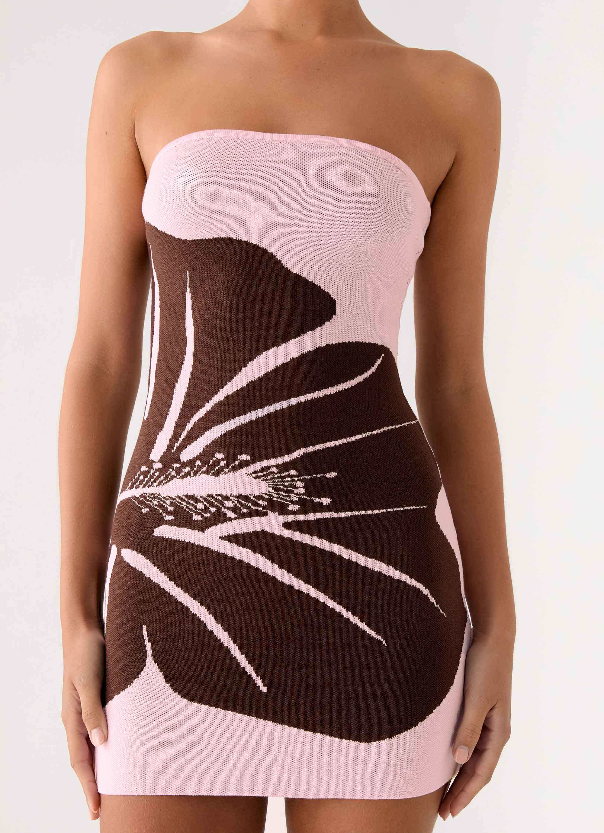 Peppermayo Exclusive - Kader Strapless Knit Mini Dress - Espresso Meadow