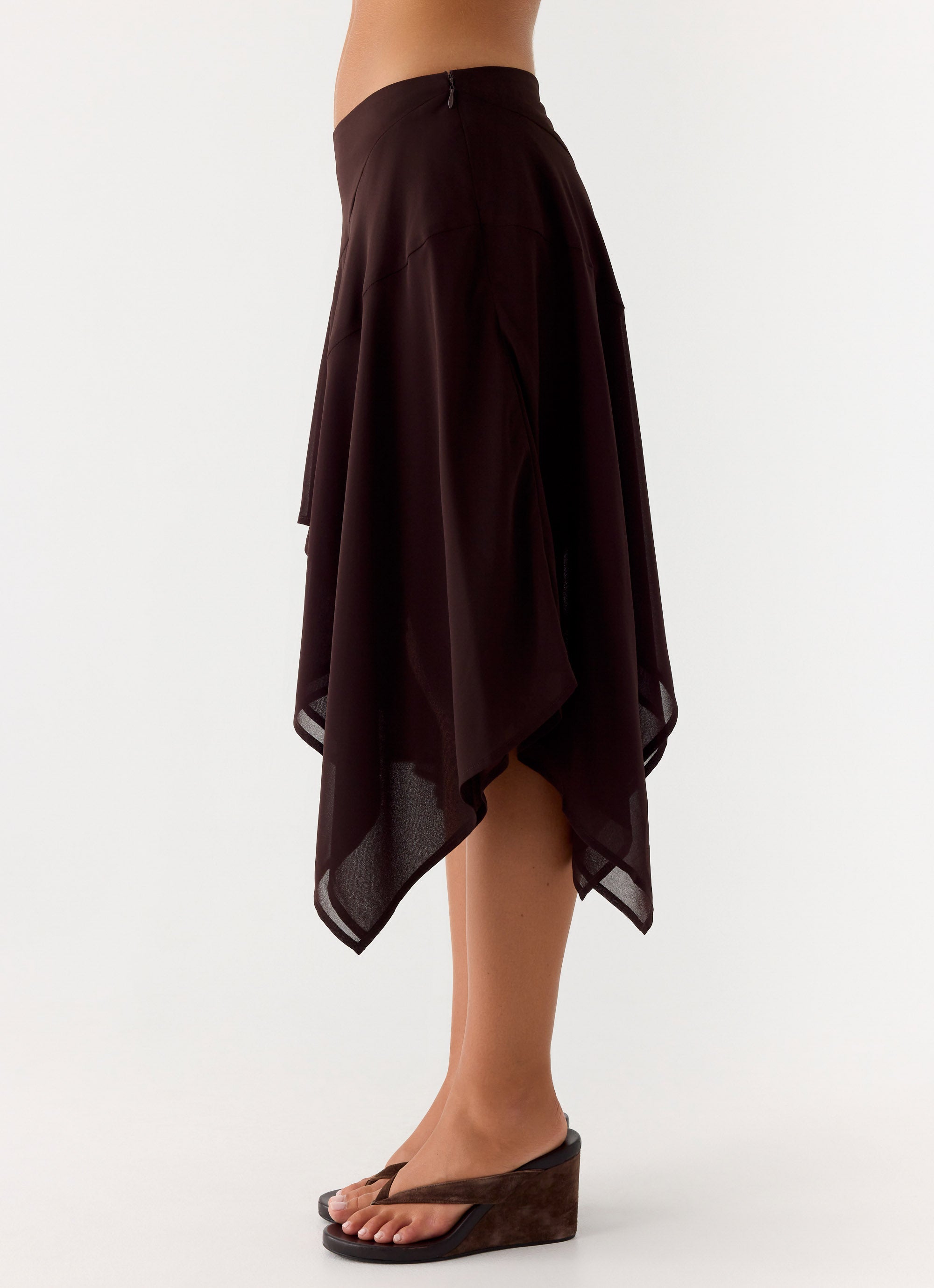 Kia Low Rise Asymmetrical Midi Skirt - Chocolate