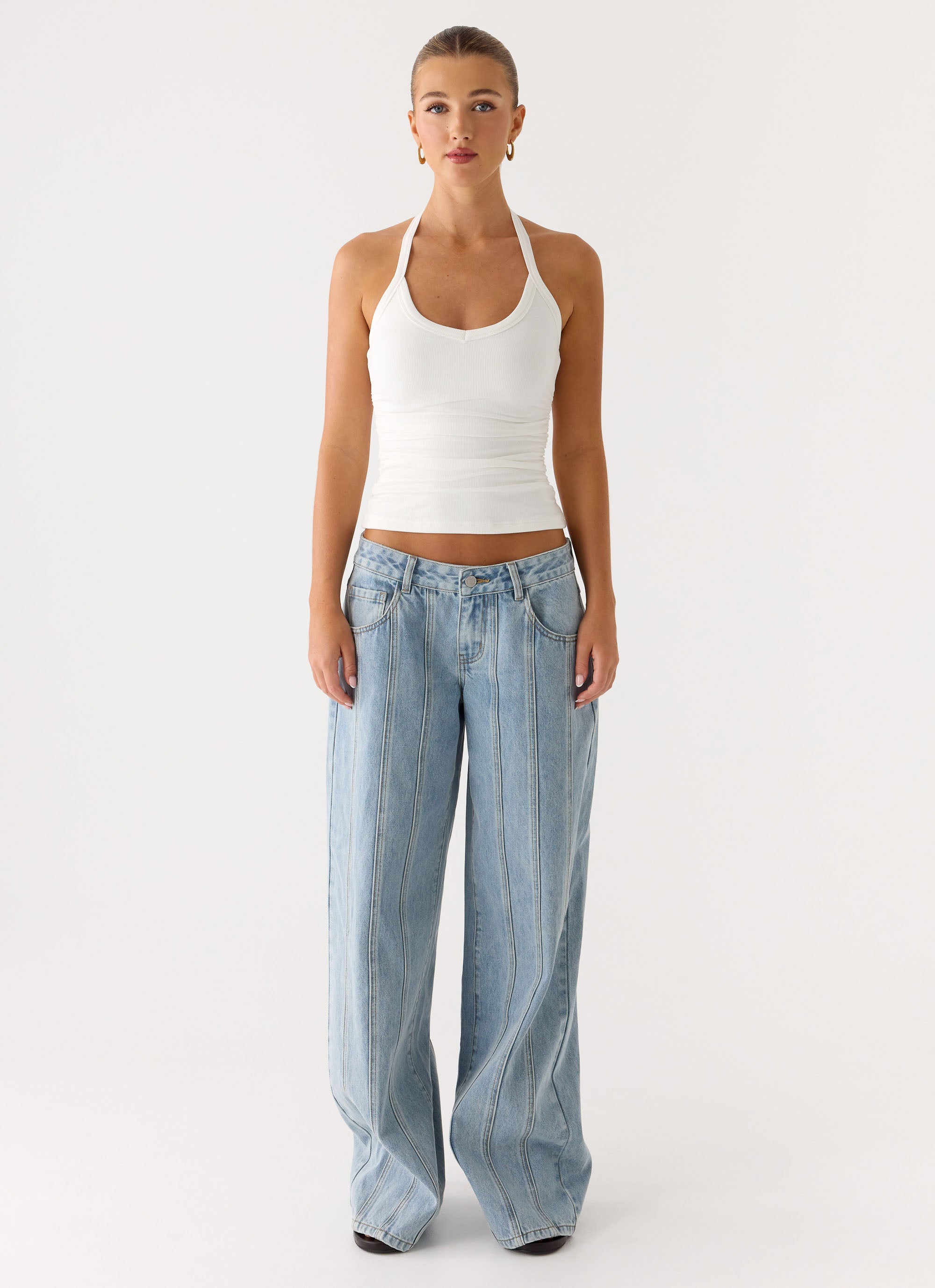 The Naturi Ribbed Halter Top is made for warm nights that blur into sunrise. With a flattering halter neckline and body-hugging fit, this premium jersey piece is self-lined for smooth structure and dips into a low back for an effortless after-dark silhouette. Perfect for taking you from beach bar to golden hour cocktails.