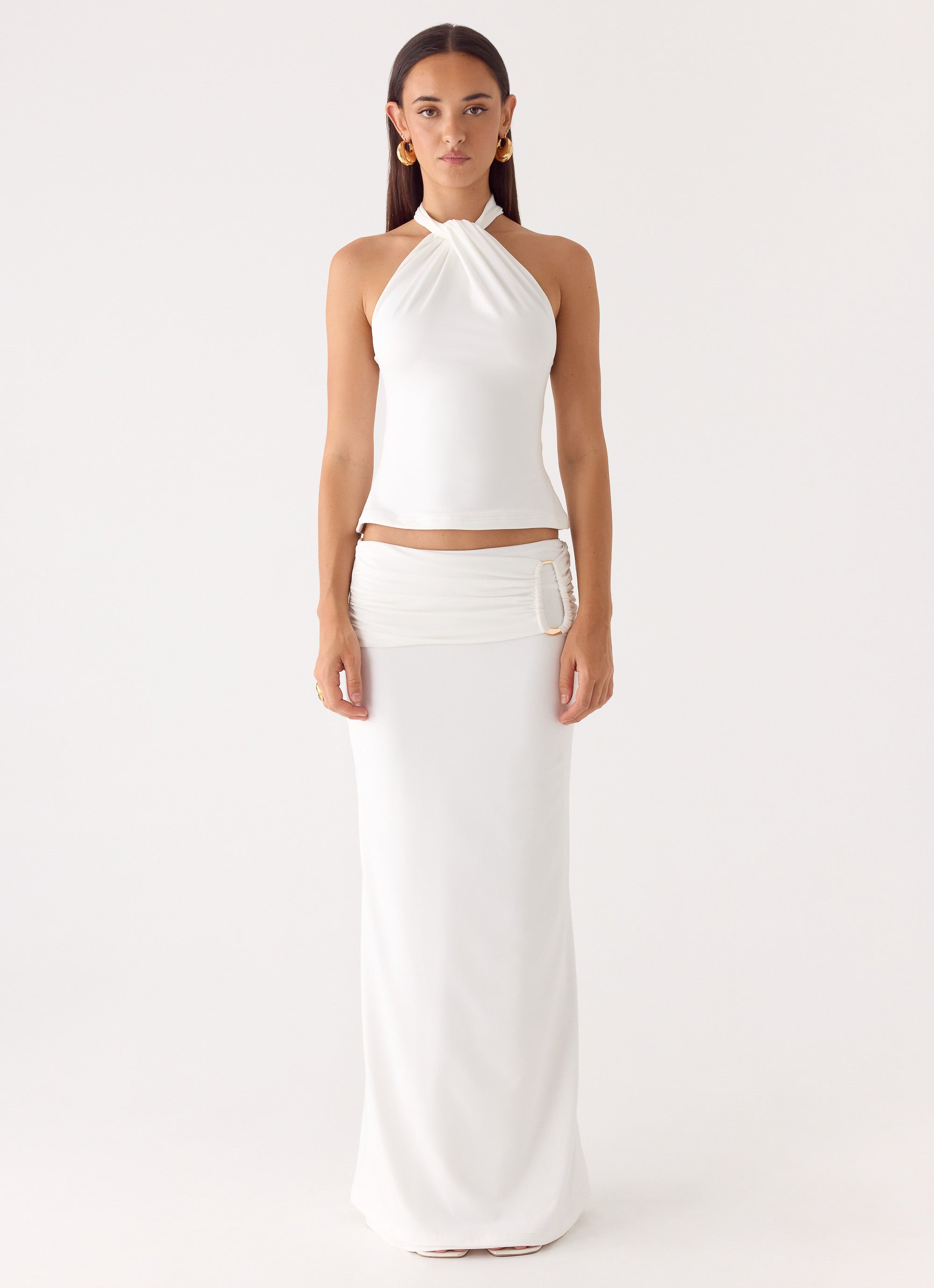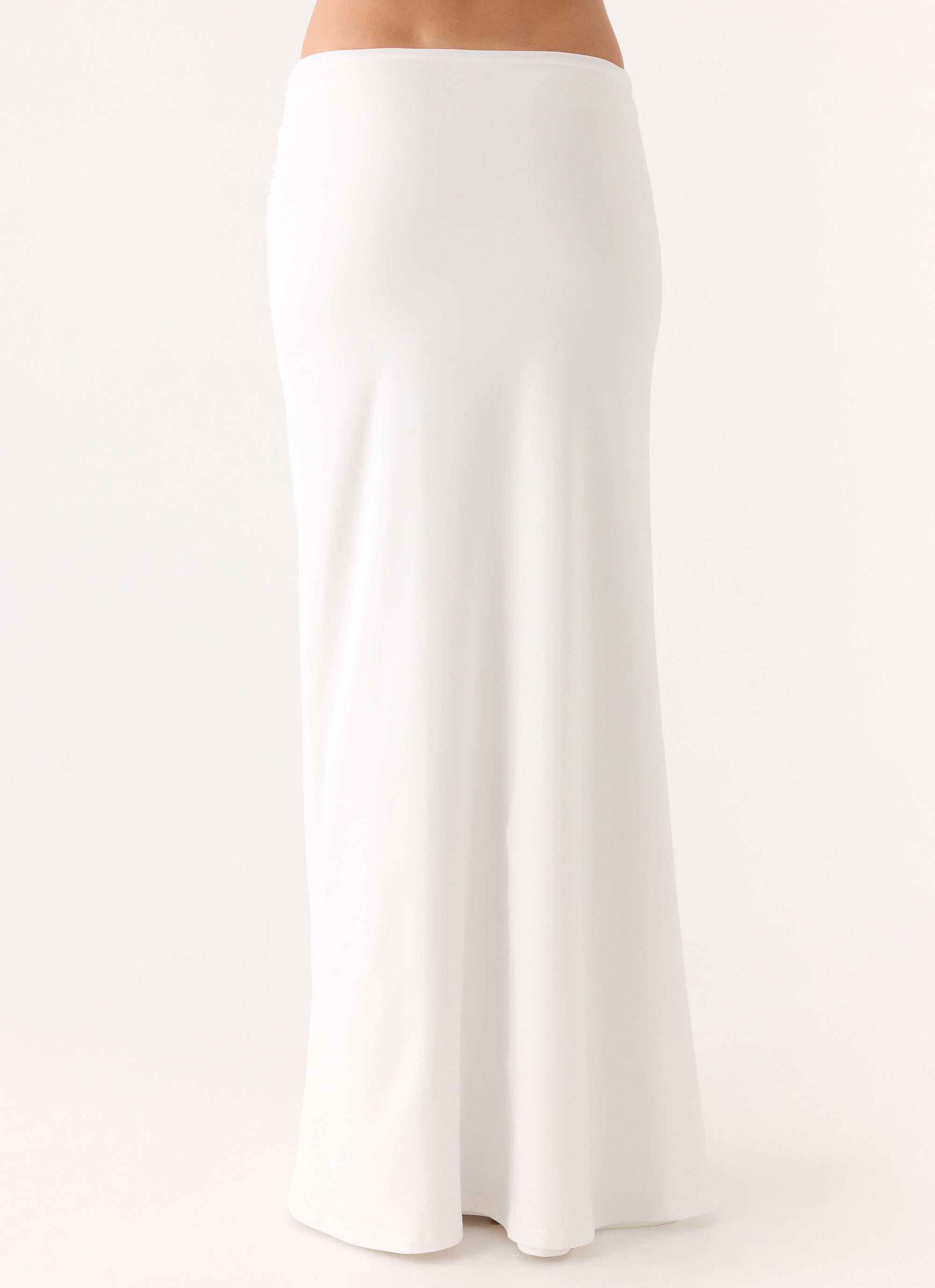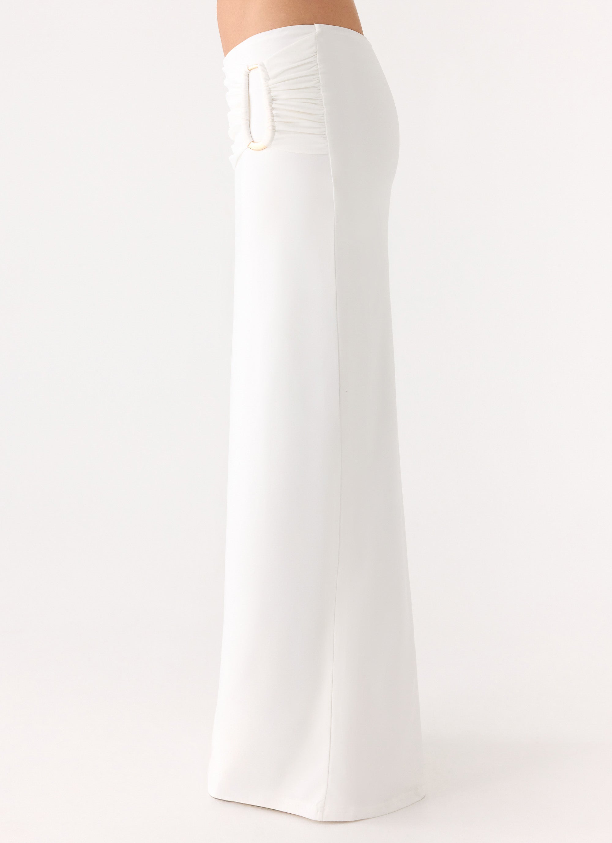 The Rosanna Maxi Skirt is made for sunlit days that glide effortlessly into golden evenings. Featuring a low-rise fit and flowing maxi-length silhouette, it’s detailed with delicate ruching and finished with a subtle gold metal embellishment for an editorial, feminine touch. Fully lined for comfort, it moves with effortless elegance.