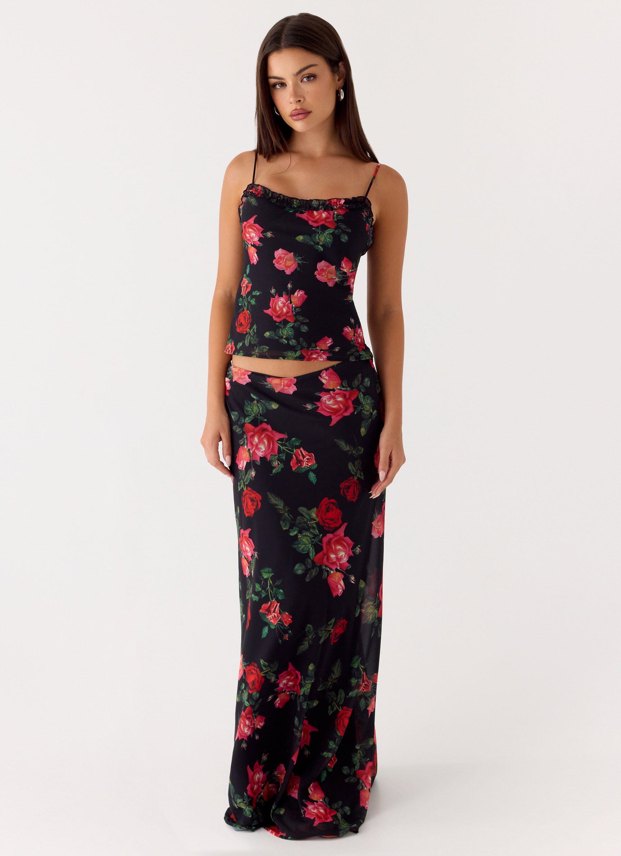 The Star Girl Maxi Skirt features a low-rise waistband, creating a flattering fit that sits comfortably on the hips. With its elegant garment construction and fully lined design, this skirt offers both style and coverage, making it perfect for day-to-night looks.